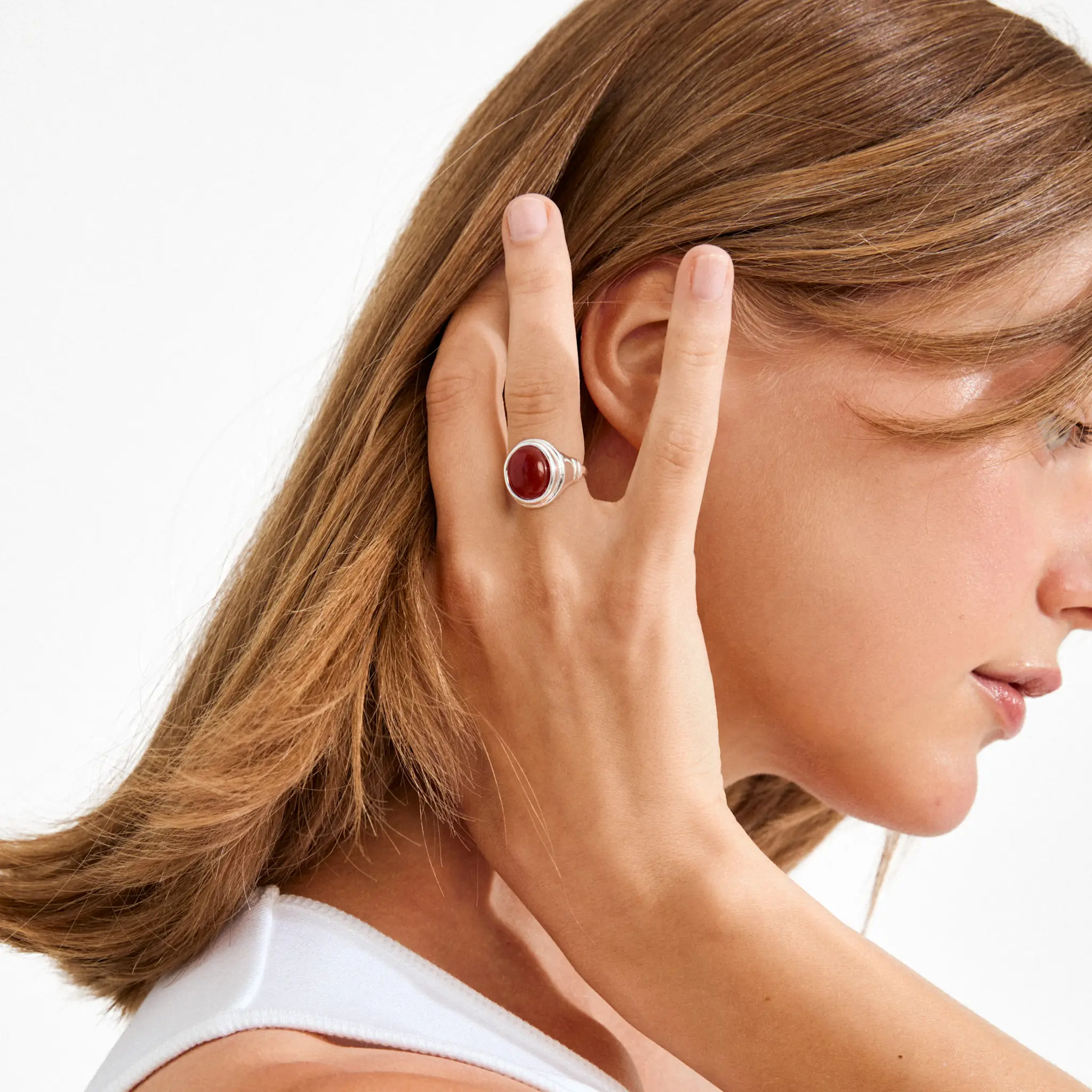 - Bague plaquée argent avec agate rouge