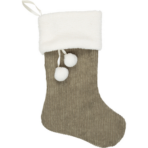 Ce bas de Noël en velours côtelé vert, agrémenté d'une boucle pour le suspendre, mesure environ 18 pouces. Parfait pour ajouter une touche élégante à votre décoration festive !