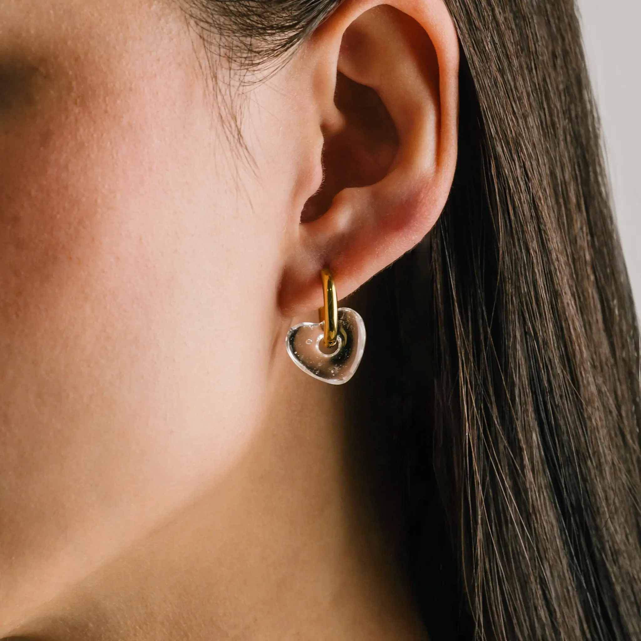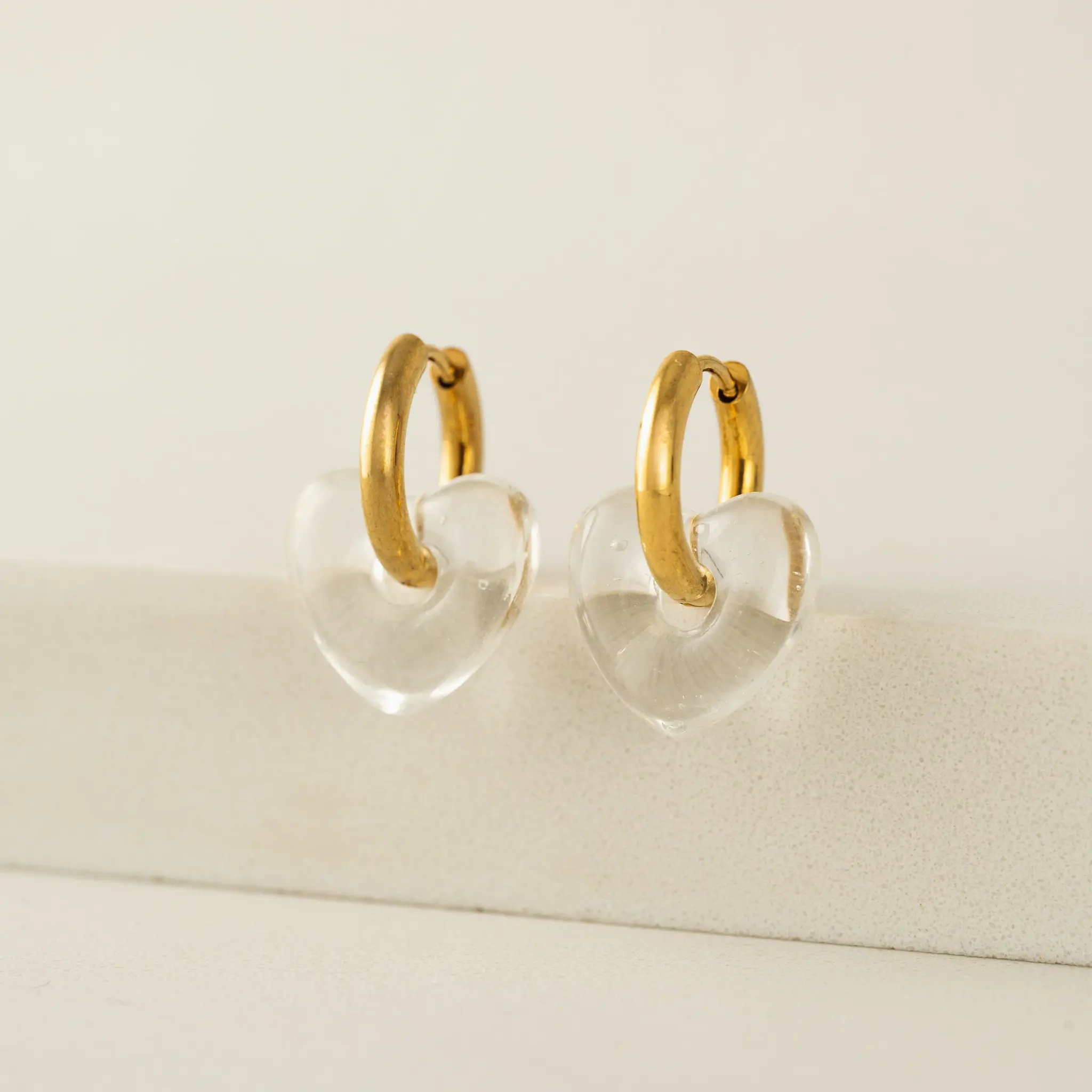• Une version délicate des créoles du quotidien, associant une silhouette classique en or à un cœur en verre fragile. Légères, confortables et faciles à porter, elles apportent une touche de romantisme discret, parfaite au quotidien comme pour les occasions spéciales.