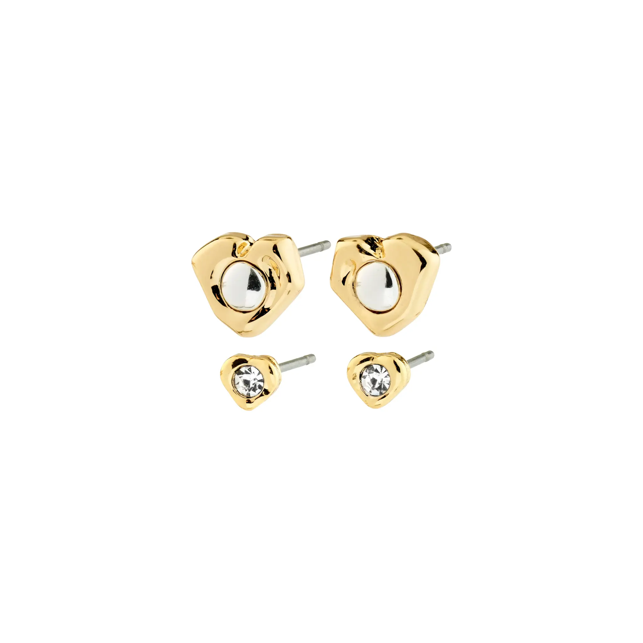 Deux fois plus d'amour, deux fois plus d'éclat! Les boucles d'oreilles Nova de Pilgrim se présentent par paire, avec des cœurs plaqués or aux lignes audacieuses et abstraites. Les plus grandes arborent un centre plaqué argent qui contraste avec la chaude finition dorée, tandis que les plus petites sont ornées d'un cristal Preciosa étincelant. Portez-les seules ou associez-les pour créer une infinité de styles : ces bijoux polyvalents sont parfaits pour toutes les occasions. Fabriquées à partir de 99 % de matériaux recyclés!