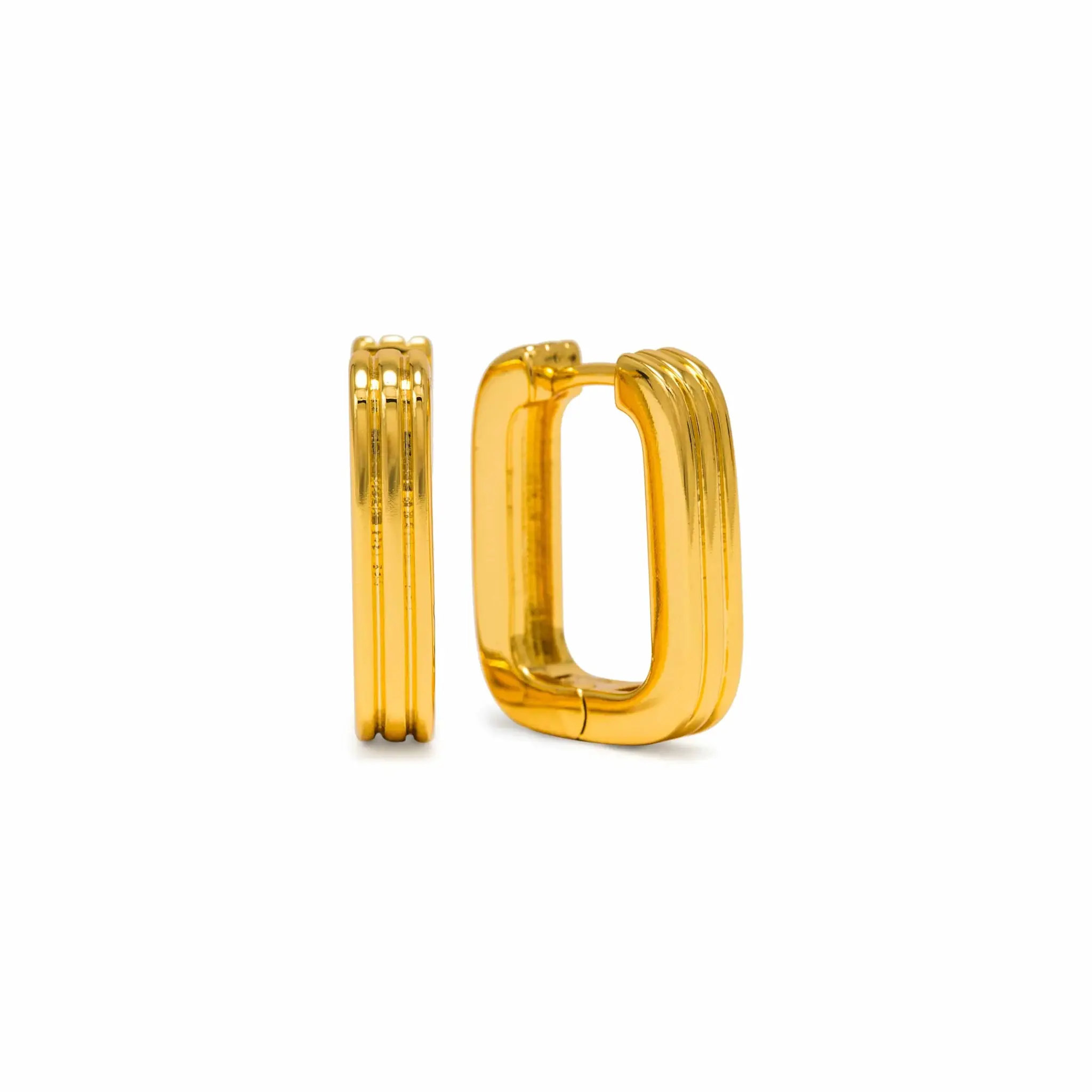 Élégantes et modernes, ces boucles d'oreilles créoles en forme de U de 20 mm présentent de subtiles rainures qui captent la lumière à chaque mouvement. Confectionnées en laiton plaqué or 14 carats, elles offrent une finition polie et contemporaine, idéale au quotidien ou à associer à d'autres boucles d'oreilles.
