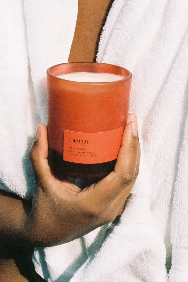 Parfums musqués et profonds de résine de miel suintant, de vanille chaude, d'épicéa et d'anis. Une douce lueur, l'ardeur d'une marée estivale, une chaleureuse compagnie. Pendant que la mèche brûle, fondez dans des scintillements de doux souvenirs.