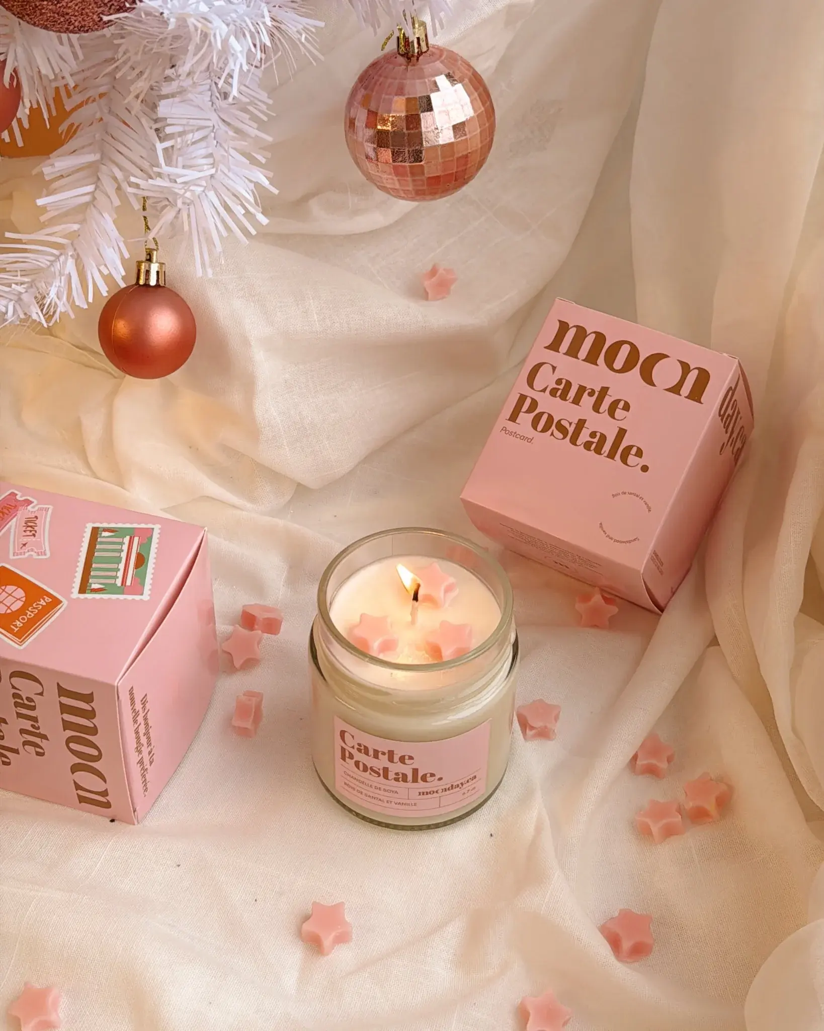 • Apaisante et douce, Carte Postale sent comme un mot doux qu’on relit les soirs d’hiver. Son mélange de vanille et de bois de santal qui enveloppe comme une phrase écrite à la main qu’on garde précieusement. Dangereusement réconfortante — bonne chance pour ne pas la rallumer demain.