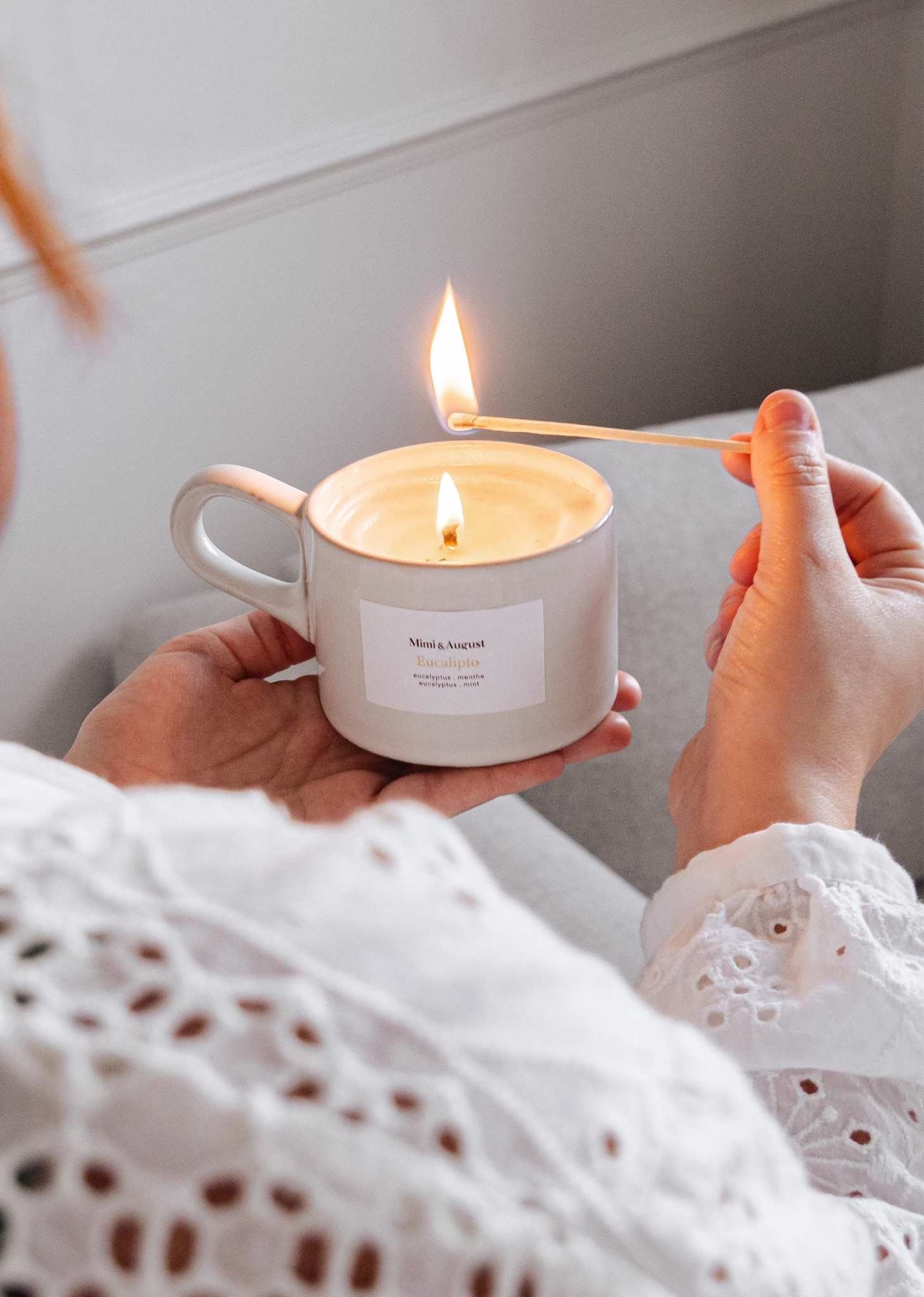 Avec cette odeur d'eucalyptus frais, la détente est assurée. Cette bougie deviendra votre nouvelle tasse à anse préférée. Unique et polyvalente, elle peut être utilisée comme porte-bougie ou comme tasse. Dégustez votre café, votre thé ou toute autre boisson avec style