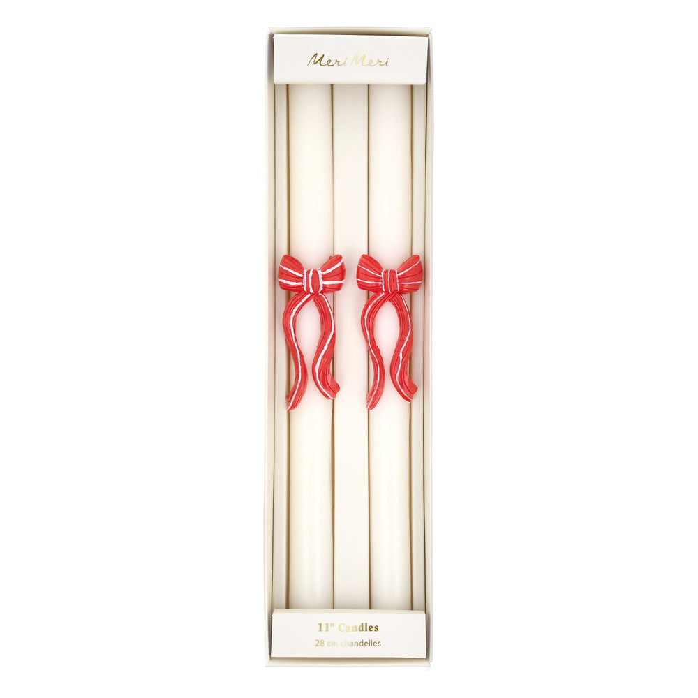 Les nœuds sont le symbole ultime de la célébration! Meri Meri a donc décoré ces bougies de table ivoire avec des détails chics pour un rendu spectaculaire. Les rayures rouges et rose pâle leur donnent une allure sophistiquée, tandis que les mèches rouges attirent immédiatement le regard. Parfaites pour sublimer une table, décorer une cheminée ou offrir à un hôte ou une hôtesse.