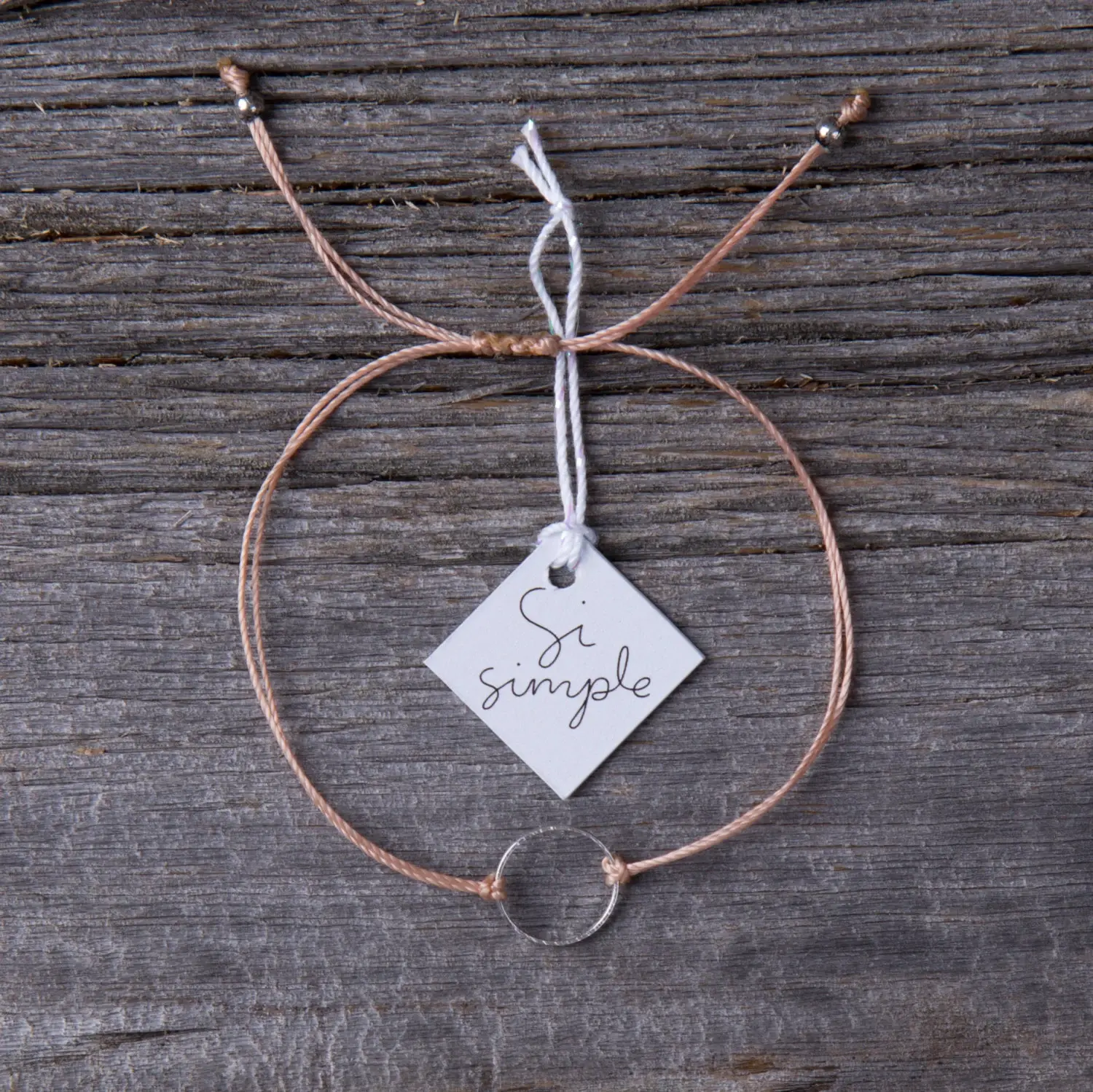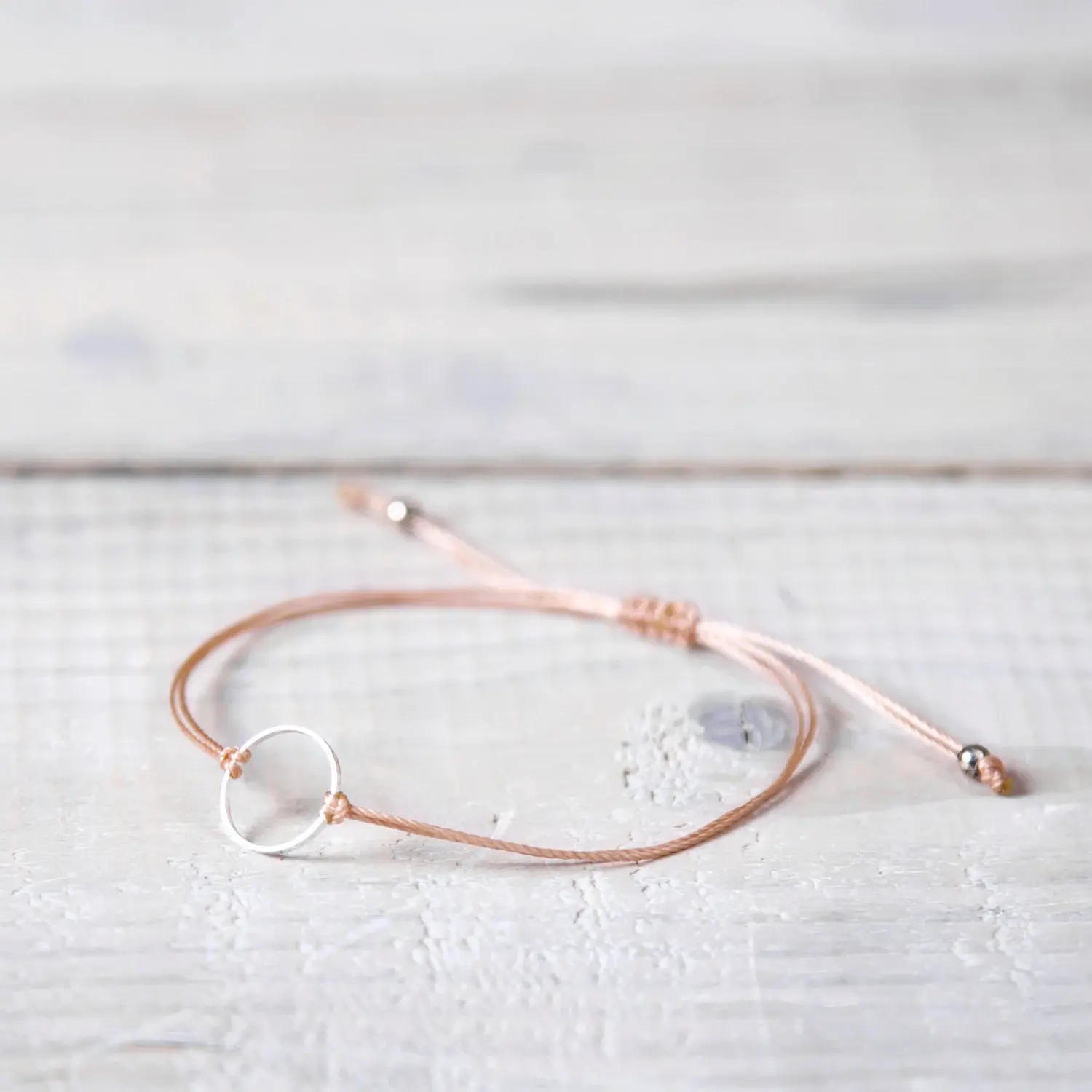 Bracelet avec anneau délicat plaqué argent sur fil de nylon.