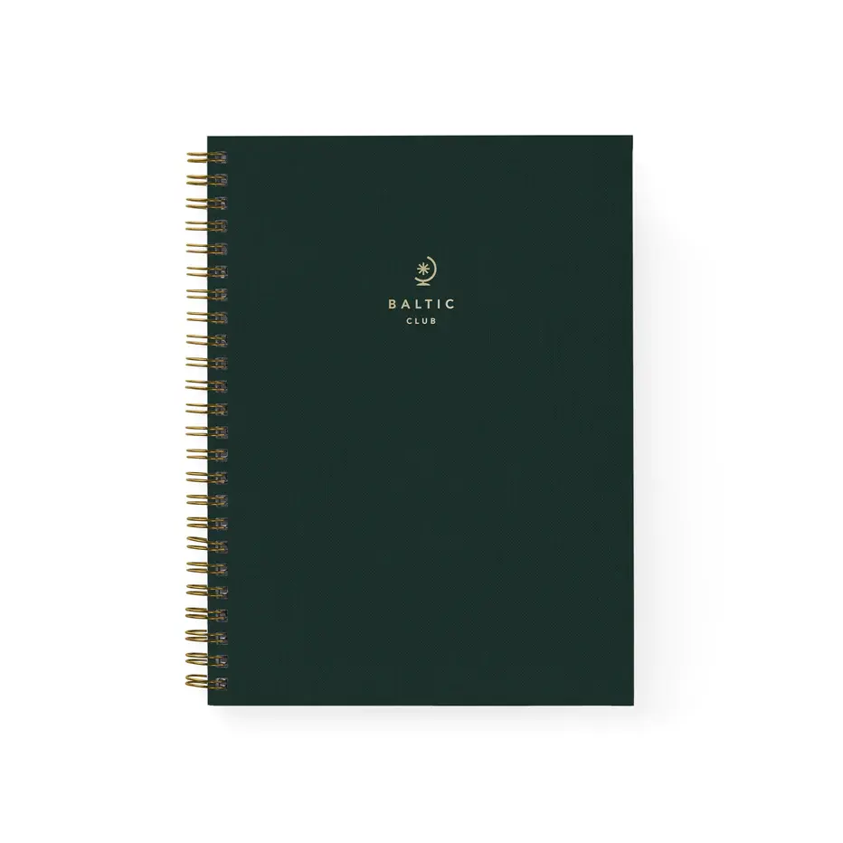 Un élégant cahier avec une couverture recouverte d'une élégante toile de tissu sur carton et composé de 110 pages de papier naturel 60 lbs ultra-lisse. La couverture arrière est un carton kraft rigide.