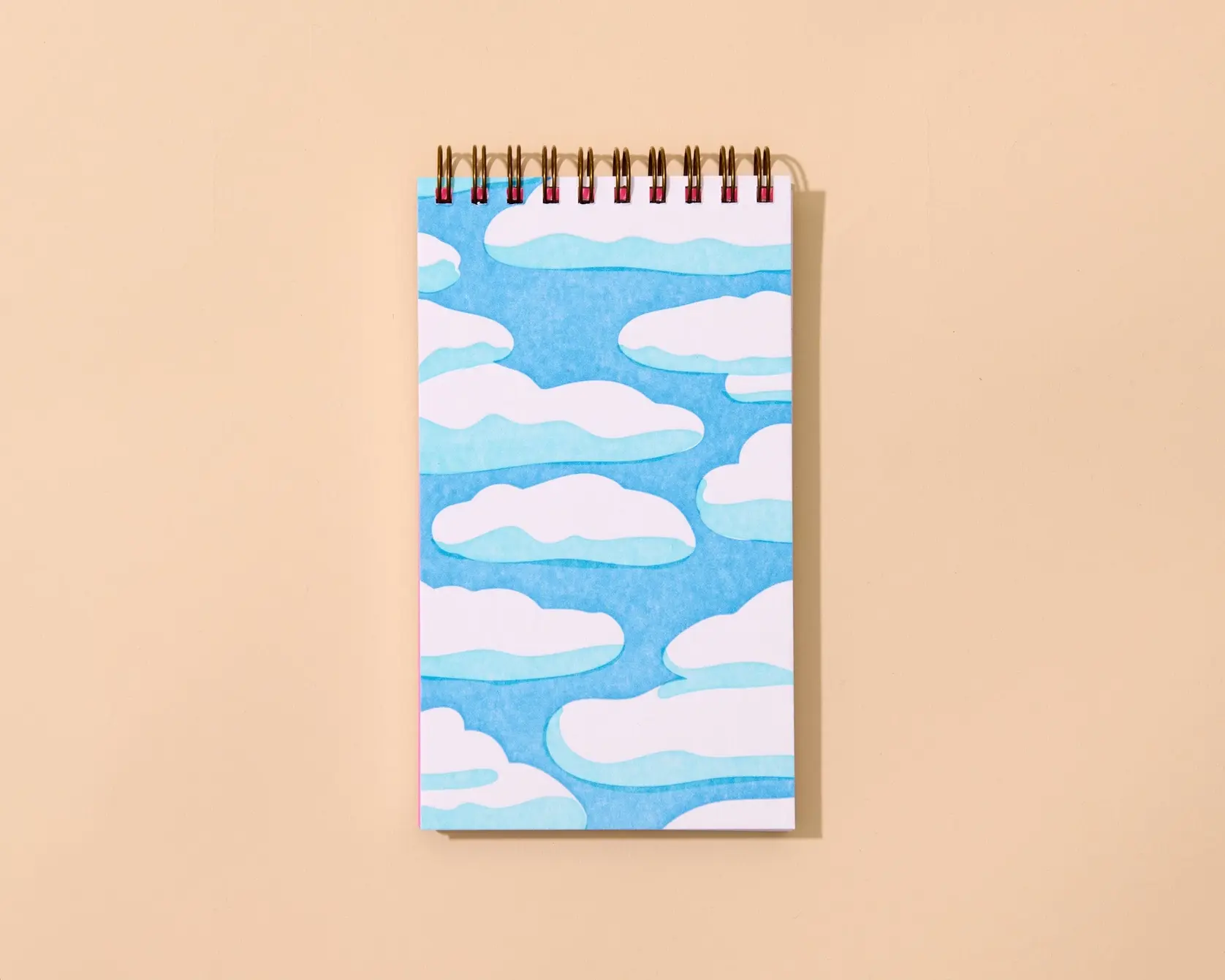 Ce carnet spirale de taille de poche et aux couleurs vives est parfait pour vos notes et listes au quotidien grâce à sa taille pratique. Imprimé à la main avec un motif tendance de ciel et nuages. 60 pages lignées.