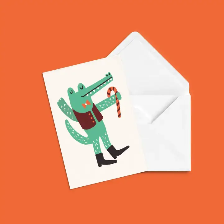 Souhaitez de joyeuses fêtes avec cette carte illustrée d’un adorable Mr. Croc!