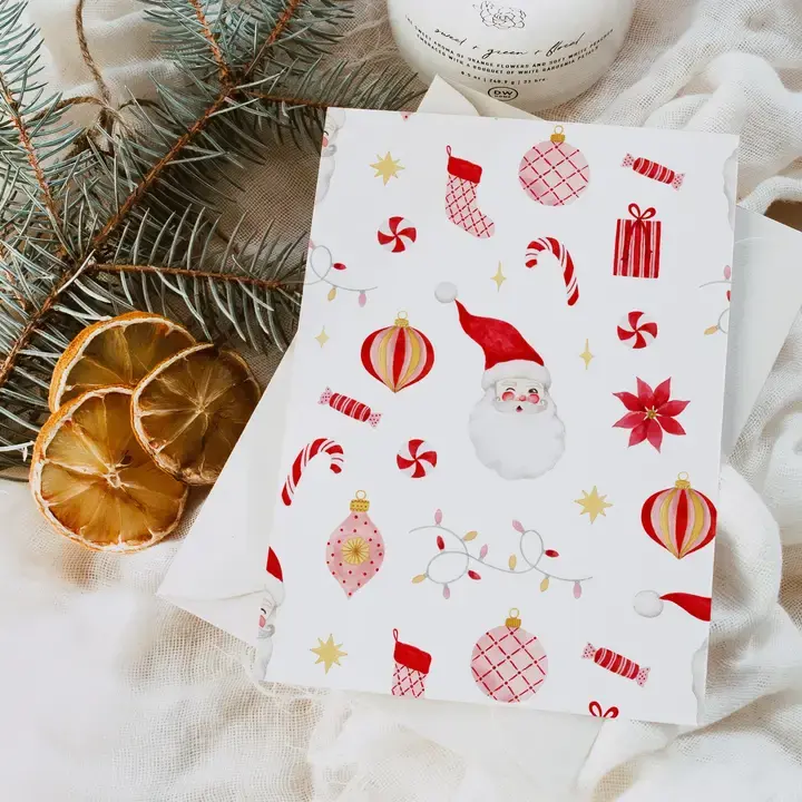 Carte de Noël illustrée par Marie-Lise, parfaite pour accompagner les cadeaux et pour envoyer vos voeux à votre famille et vos amis.