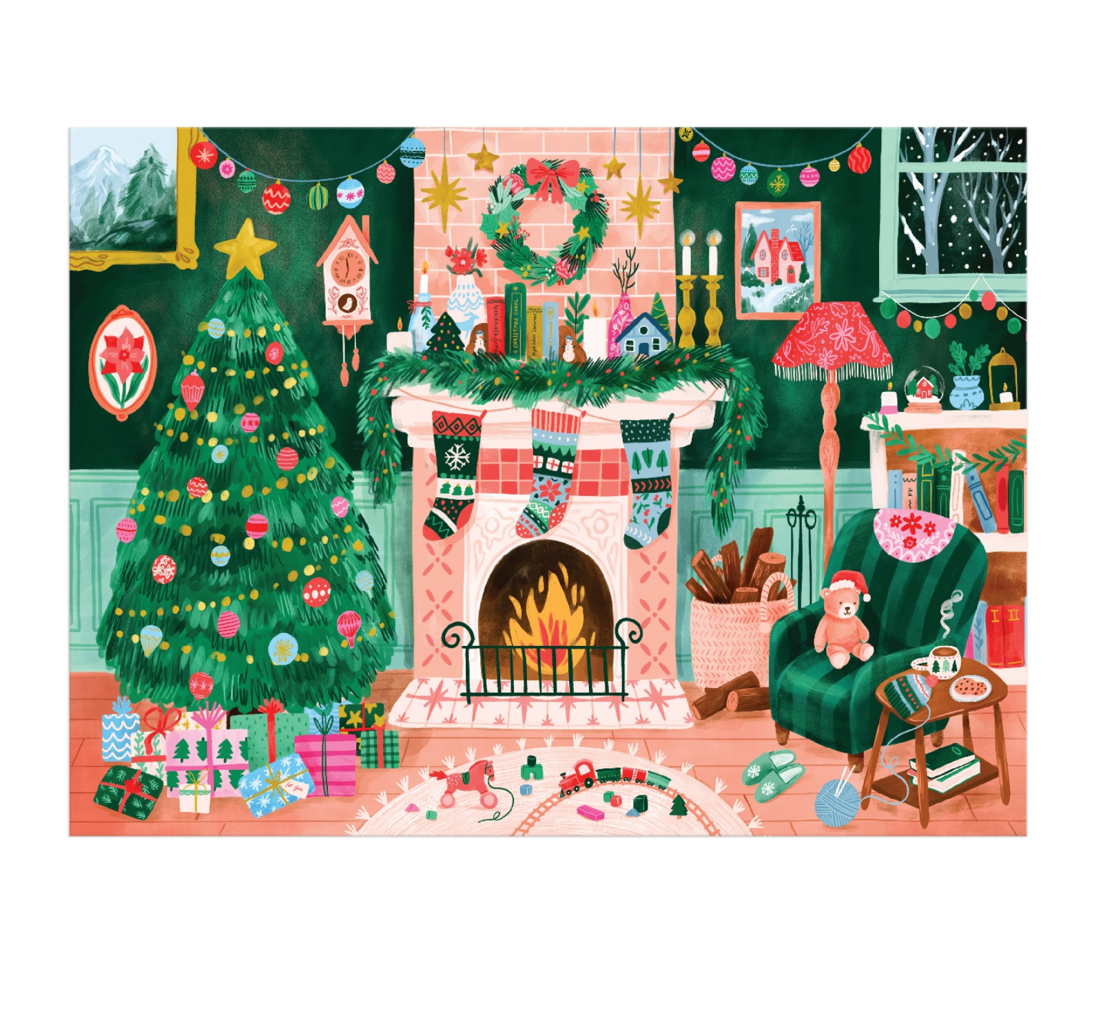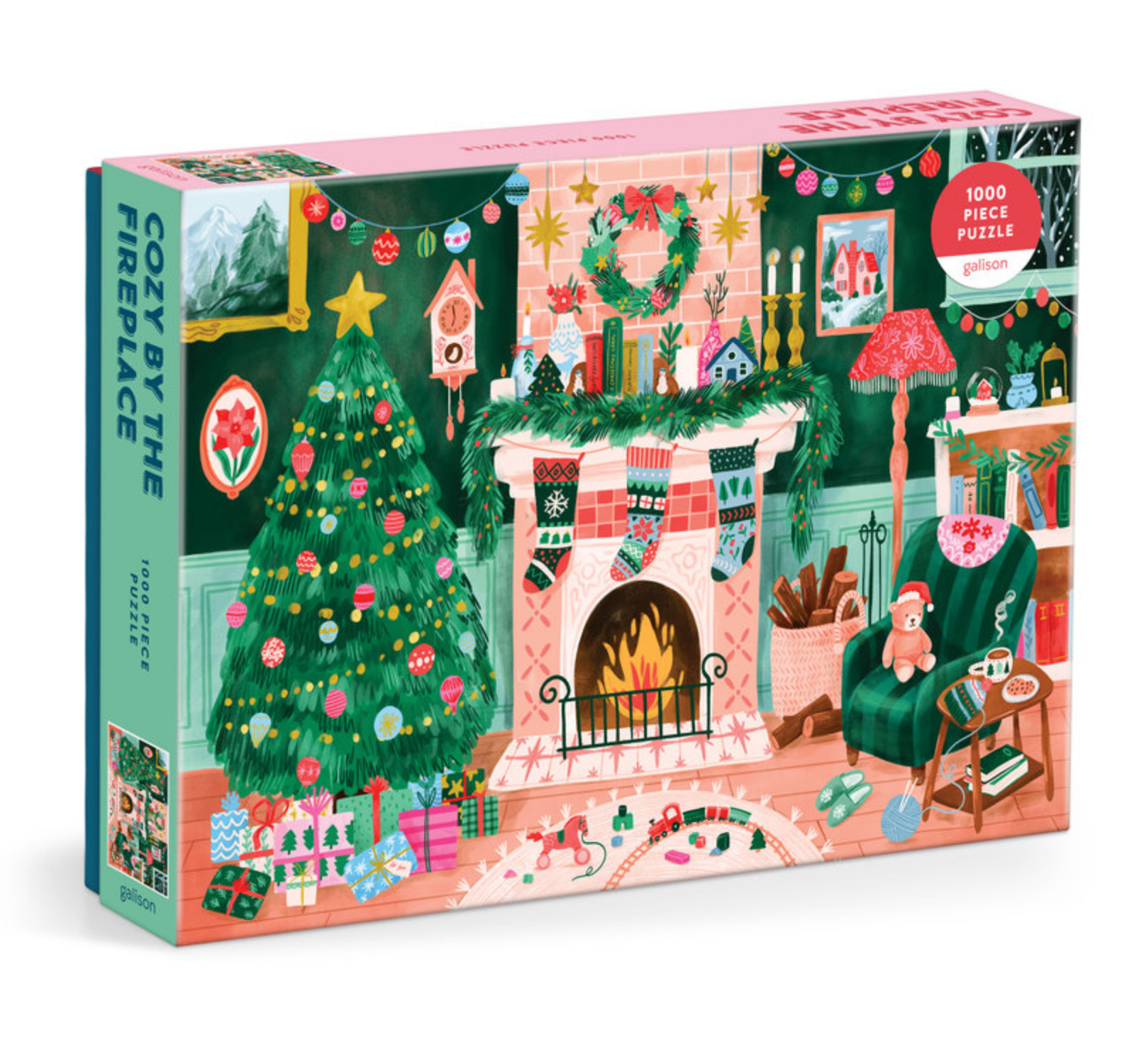 PUZZLE 1000 PIÈCES - Le puzzle 1000 pièces « Cozy By The Fireplace » de Galison présente un salon chaleureux, parfaitement décoré pour les fêtes de fin d'année. Ce puzzle offre un niveau de difficulté idéal pour que toute la famille puisse s'amuser pendant des heures! Que vous cherchiez une activité amusante pour un jour de pluie ou un cadeau unique pour un être cher, ce puzzle fera sensation! Avec ses détails complexes et son design stimulant, ce puzzle est parfait pour tous ceux qui apprécient le confort des fêtes de fin d'année.