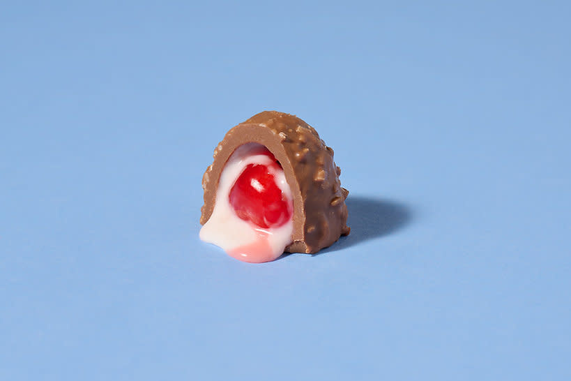 Une coque de chocolat au lait à la de noix de coco grillée, renfermant une cerise au marasquin plongée dans un fondant crémeux à la vanille. Encore meilleur que vos souvenirs d'enfance !