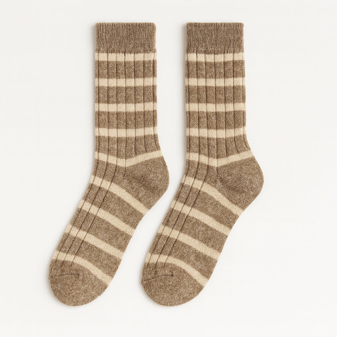 Les chaussettes Marina à rayures côtelées est un modèle mi-saison essentiel, orné de rayures classiques et d'une texture côtelée confortable. Conçue pour être portée toute la journée, elle offre un équilibre parfait entre respirabilité et maintien douillet.