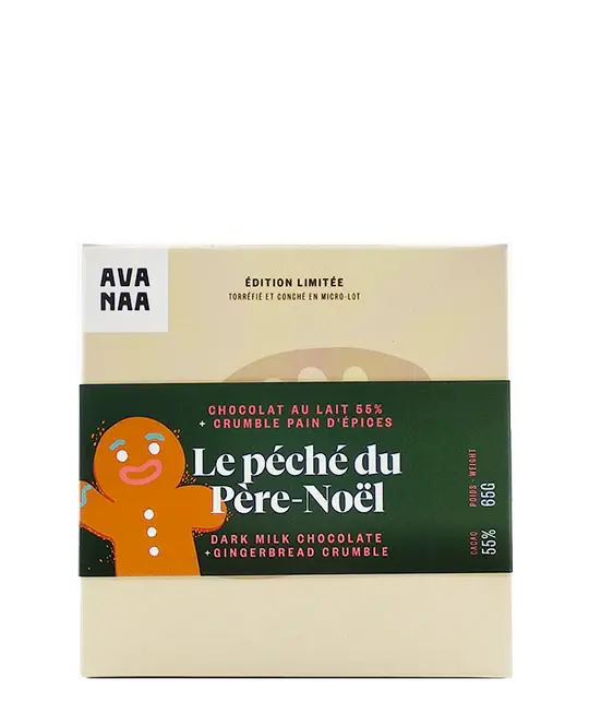 Ce croustillant au biscuit pain d’épice est fait maison par des pâtissières. Le crémeux du chocolat au lait, les parfums de cannelle, de clou de girofle et le piquant sublime du gingembre. Les biscuits ont été émiettés et parsemés à l’arrière de notre chocolat au lait 55%.