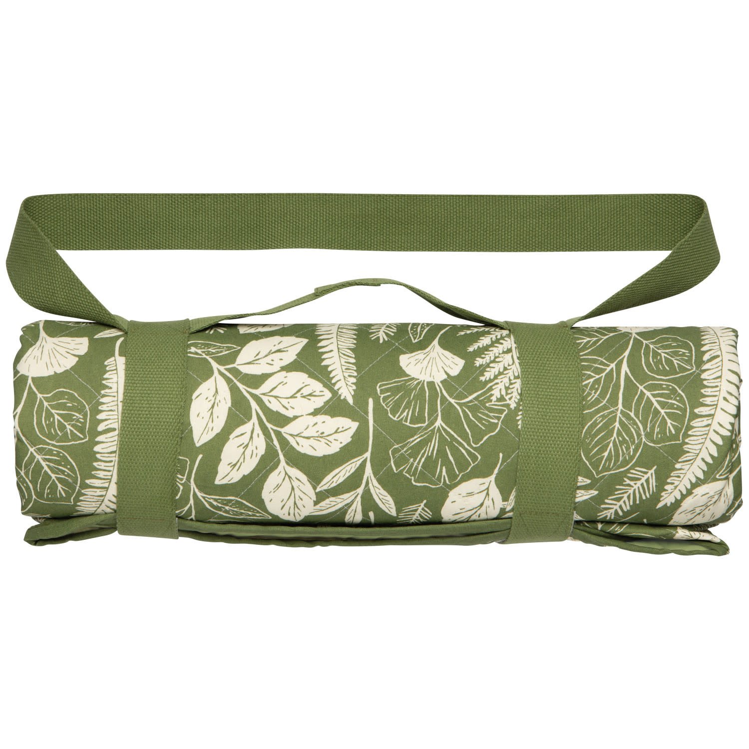 Confectionnée à partir de tissu Clean Coast 100 % recyclé – composé de plastique récupéré dans les océans et transformé en tissu – cette couverture de pique-nique enroulable Fougère, dotée d'une sangle en sergé, offre un confort optimal pour deux personnes.