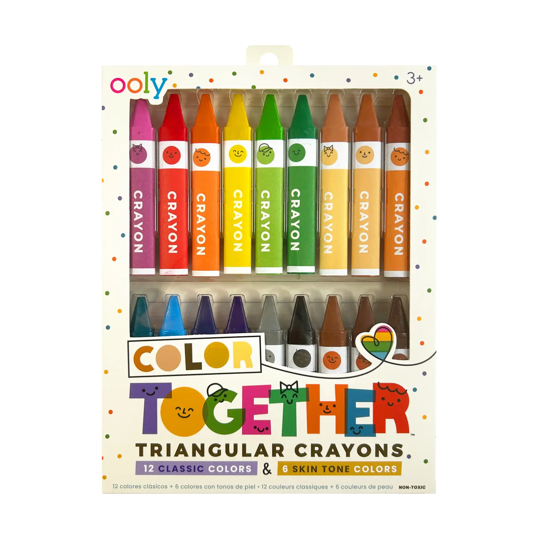 Rendez les moments artistiques plus inclusifs et amusants avec les crayons triangulaires Tous ensemble! Ce coffret de 18 crayons comprend 12 couleurs classiques et 6 teintes chair, parfaits pour colorier des personnages sur toutes les pages. Leur forme triangulaire unique les rend ergonomiques et faciles à prendre en main, même pour les petites mains, garantissant des heures de créativité aux enfants. Résistants et aux couleurs éclatantes, ces crayons sont parfaits pour tous les projets artistiques, petits ou grands. Que votre enfant dessine lui-même, ses amis ou sa famille, ces crayons l'aideront à donner vie à chaque personnage.