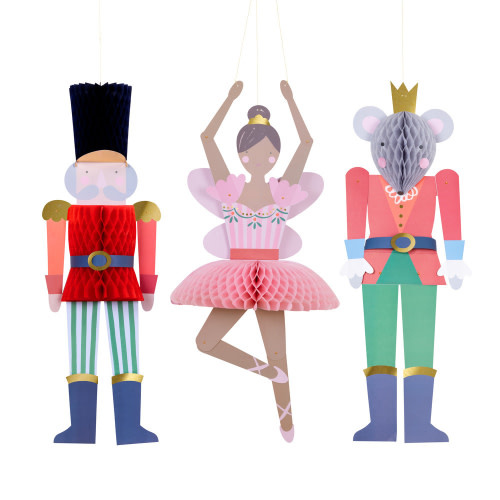 Faites vivre la magie du ballet Casse-Noisette avec ces magnifiques décorations de Noël à suspendre. Grandes et audacieuses, elles constituent des points focaux saisissants dans votre intérieur, parfaits aussi comme arrière-plan pour des photos festives. Soigneusement conçues, elles présentent des détails en papier alvéolé 3D, des touches de feuille dorée scintillante, ainsi que des bras et jambes articulés pour un effet des plus enchanteurs.