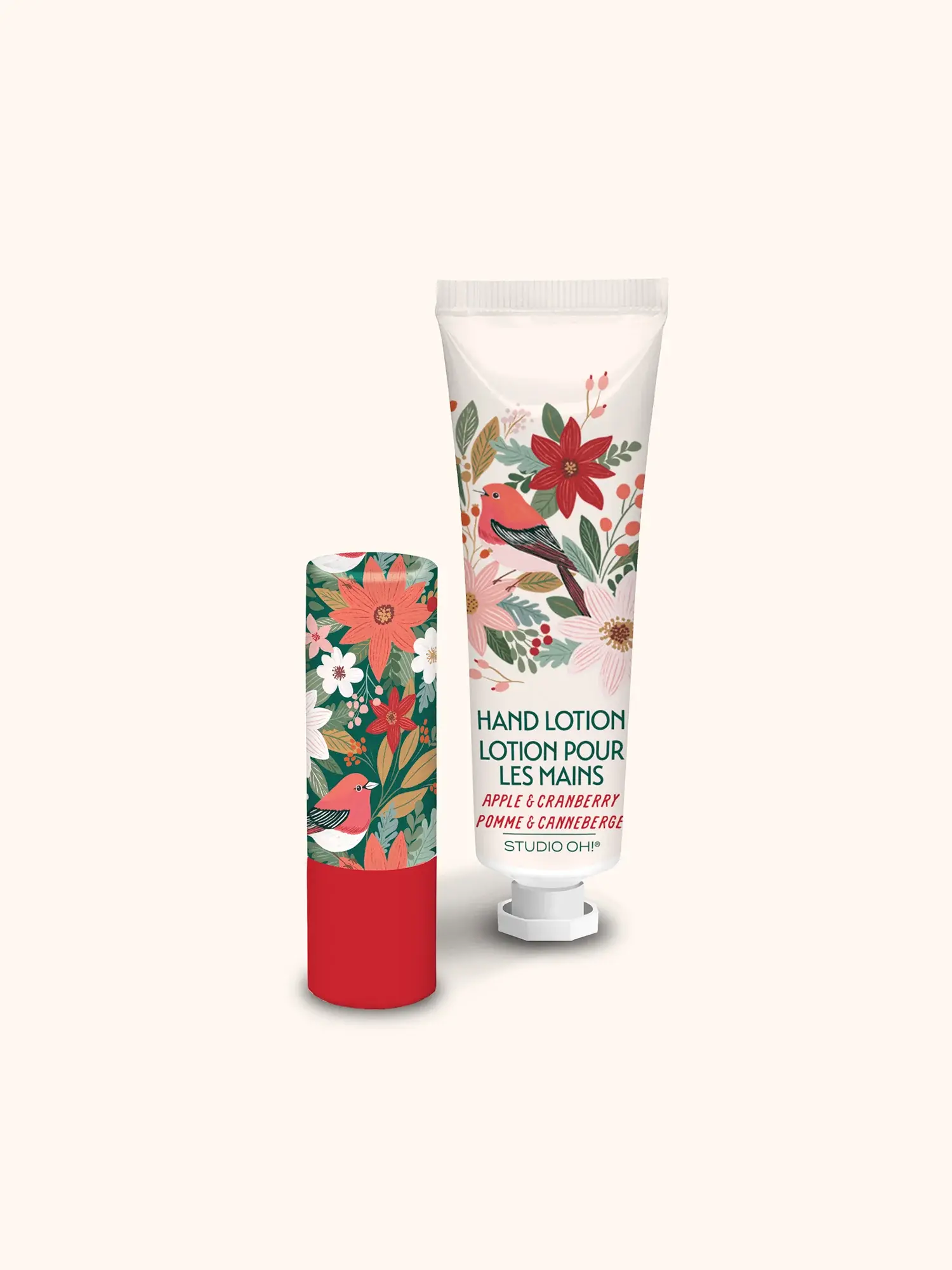 Le coffret baume à lèvres et lotion pour les mains de Studio Oh! comprend une crème pour les mains et un baume à lèvres de 30 ml, présentés dans une pochette transparente réutilisable. Le baume à lèvres non parfumé hydrate et lisse en douceur les lèvres sèches, tandis que la lotion parfumée hydrate les mains et les cuticules. Ce coffret deux pièces, au design soigné, est parfait pour se glisser dans un sac à main ou pour offrir.