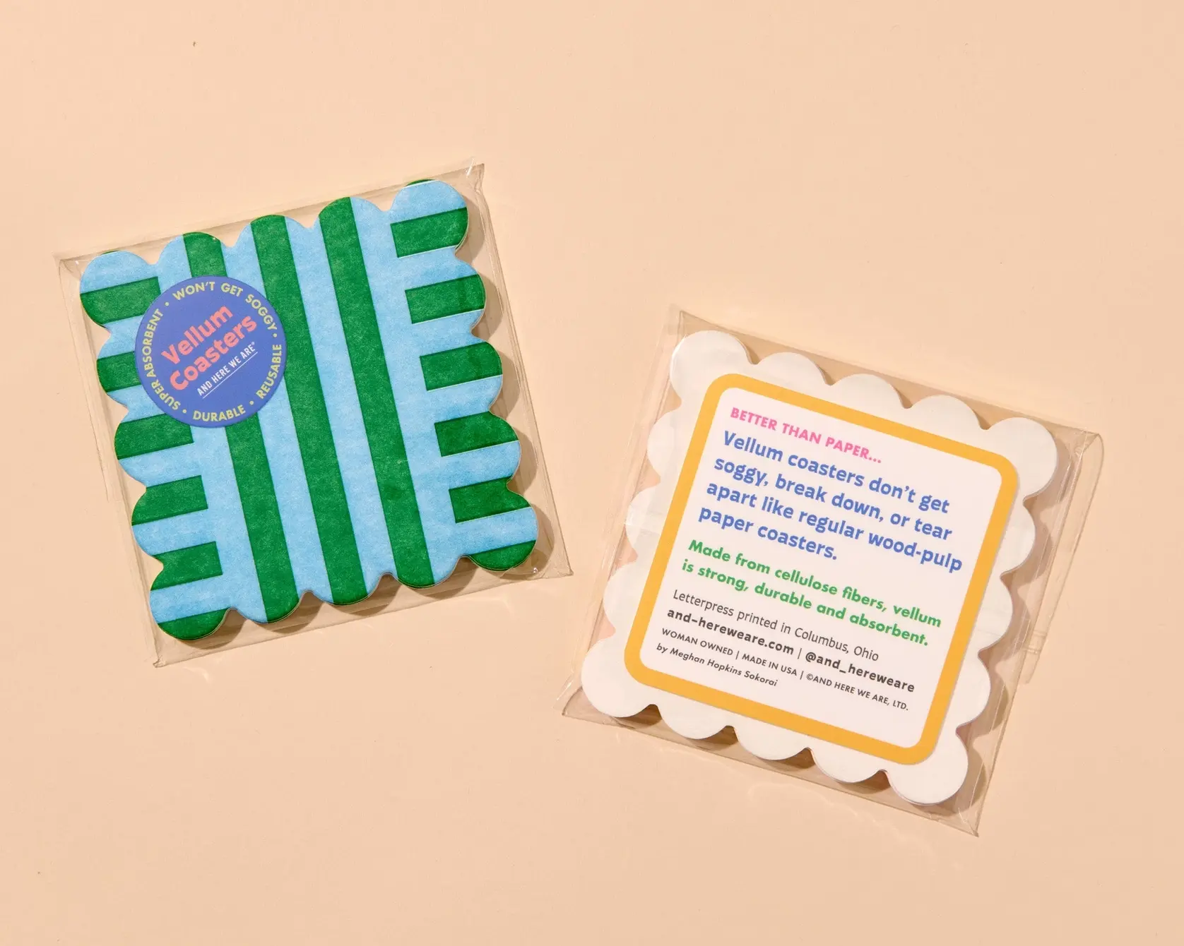 Les rayures block sont très tendance en ce moment ! Associés à des couleurs audacieuses et à un bord festonné moderne, ces sous-verres en vélin sont assurément un succès garanti auprès de tous.