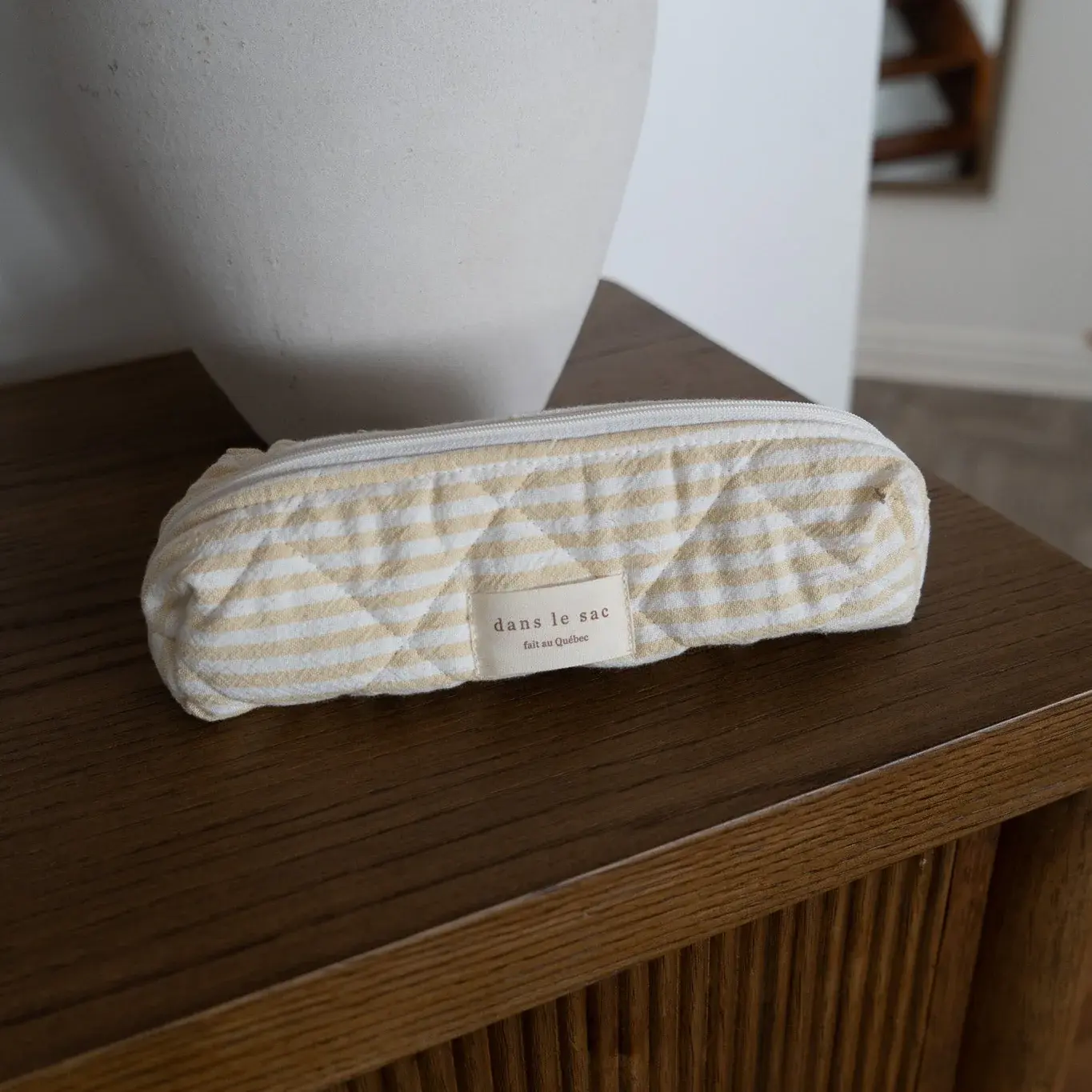 Un étui simple, pratique et durable, fabriqué à partir de des pertes de tissus afin de réduire le gaspillage. Léger, joli et parfait pour ranger crayons, stylos ou petits essentiels.