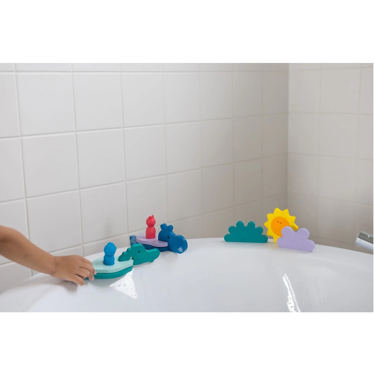 Stimulez l’imagination de vos enfants, enrichissez leur vocabulaire, améliorez leur capacité à produire des sons et aidez-les à développer leur motricité ! Toutes les formes sont fabriquées en mousse EVA douce, ce qui leur permet de flotter. Le set comprend également 2 petits personnages.