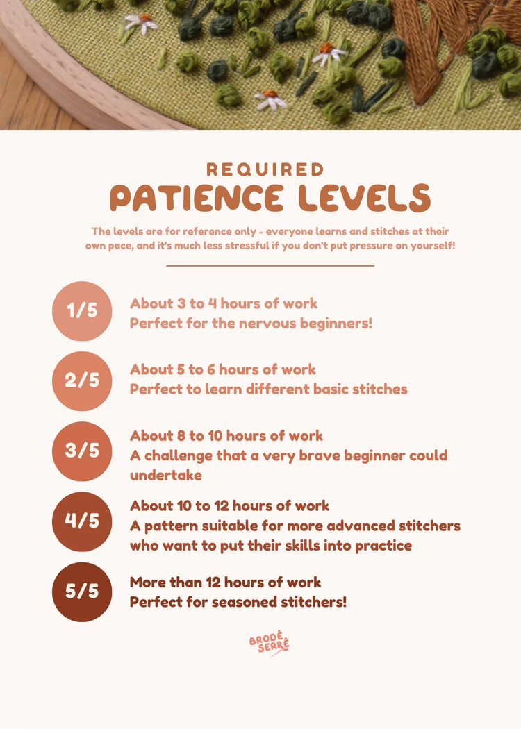 - Un guide complet des marches à suivre pour compléter la broderie (français et anglais)