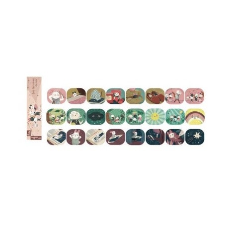 Une belle lampe torche de poche où chacun des 3 disques projetés sur le mur raconte une histoire. Elles racontent les aventures tendres et oniriques des créatures d'Après la pluie.
