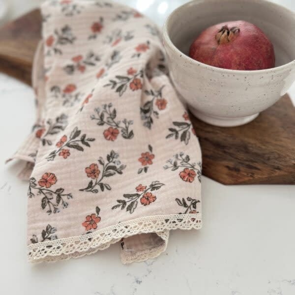 Linges à vaisselle en mousseline - Fleur corail