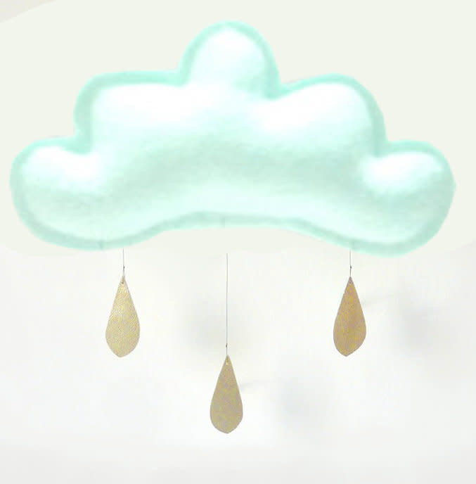 • Petit nuage en feutre avec ses gouttelettes dorées à suspendre au-dessus d’un lit ou directement sur le mur.