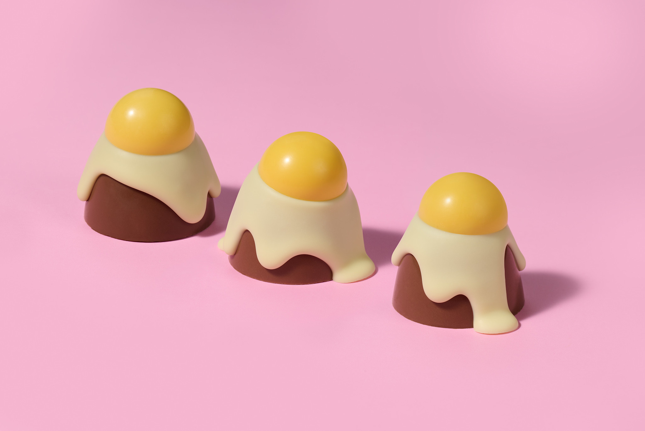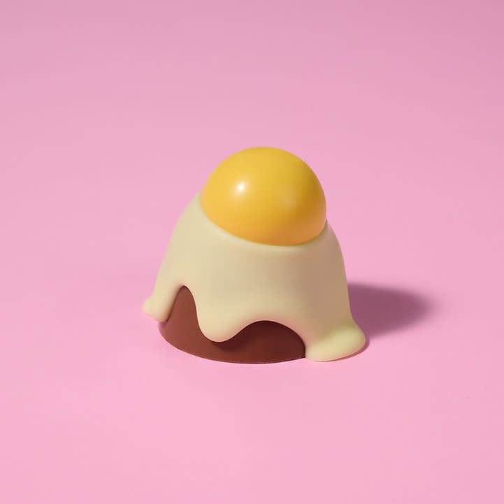 Quoi de mieux qu'un œuf en chocolat au lait, garni de caramel à la vanille et de riz croquant, avec un coulis de chocolat blanc ?