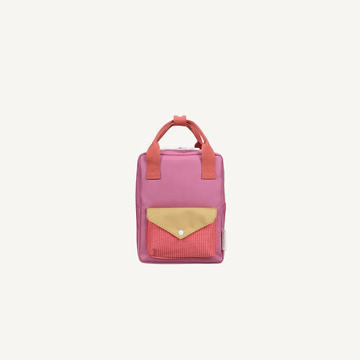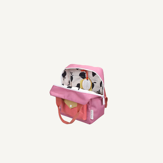 Ce mélange de couleurs donne du style à ce sac! Il possède une poche supplémentaire à l'avant, une doublure imperméable à motif dessiné à la main et des bretelles réglables. À l'intérieur, vous trouverez un élastique servant de porte-bouteille et une poche sur toute la longueur du dos, fermée par un velcro. Une étiquette pour votre nom est également prévue.
