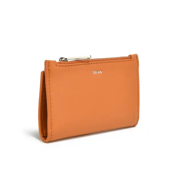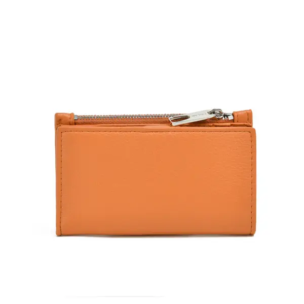 • Ce portefeuille fin possède 8 emplacements pour cartes et une fermeture éclair sur le dessus. Il est confectionné en cuir végan doux et texturé.