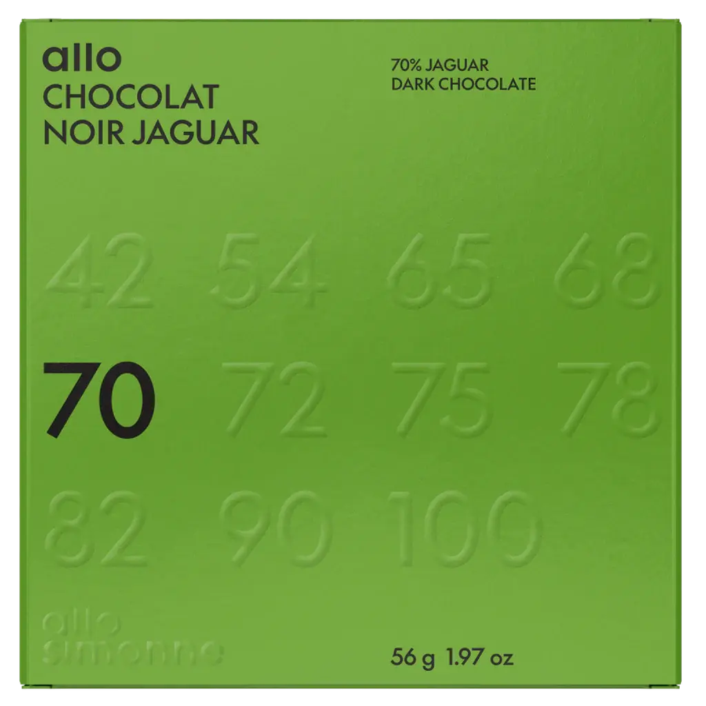 Au cœur de la forêt amazonienne, les fèves jaguar sont cultivées selon les traditions ancestrales. Connues aussi sous le nom de cacao albinos, les fèves possèdent des nuances florales et de noix. Pour sa couleur et sa texture veloutée, on dirait un chocolat au lait mais il ne contient aucun produit laitier. Il y a égualement une touche de cacao Zorzal pour créer une expérience ultime.