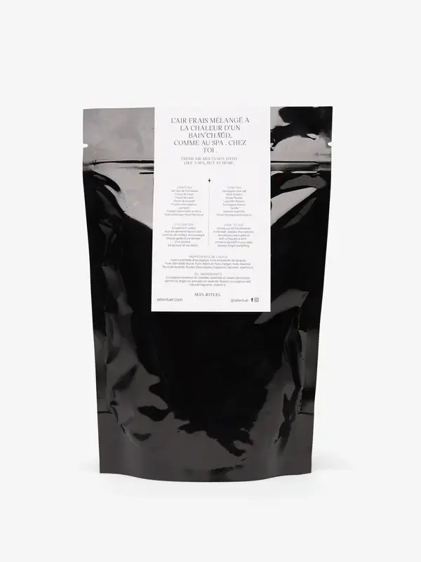 L'air frais, les arômes de lavande et d’eucalyptus se mélangent à la chaleur de ton bain chaud. C’est comme au spa, mais c’est chez toi. Le calme entre en toi par tes narines et chaque pore de ta peau.